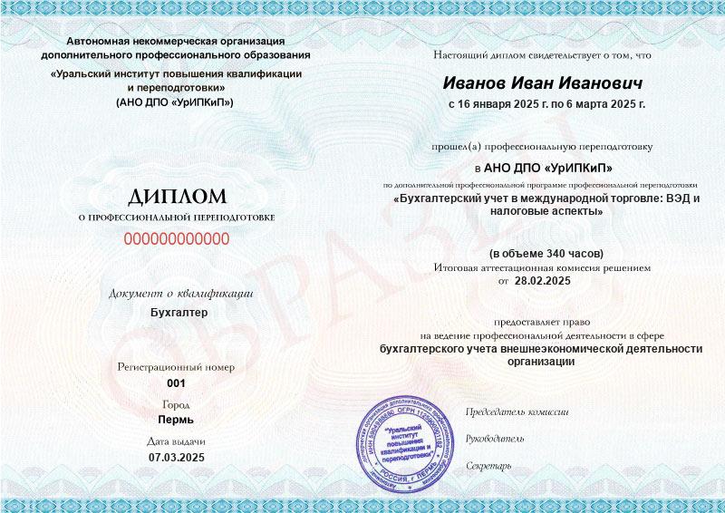Курс обучения Бухгалтерский учет в международной торговле: ВЭД и налоговые аспекты (340ч)