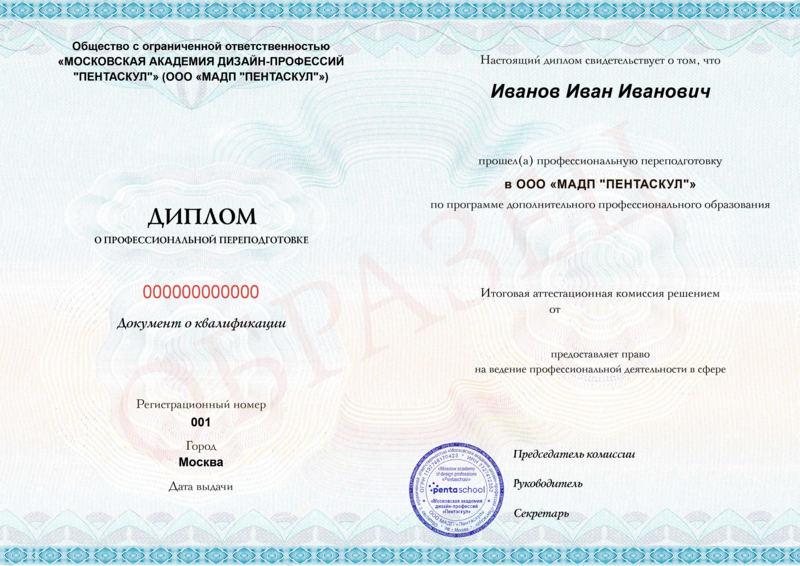 - Московский диплом о профессиональной переподготовке установленного образца с присвоением квалификации «Дизайнер ландшафтного проектирования».
