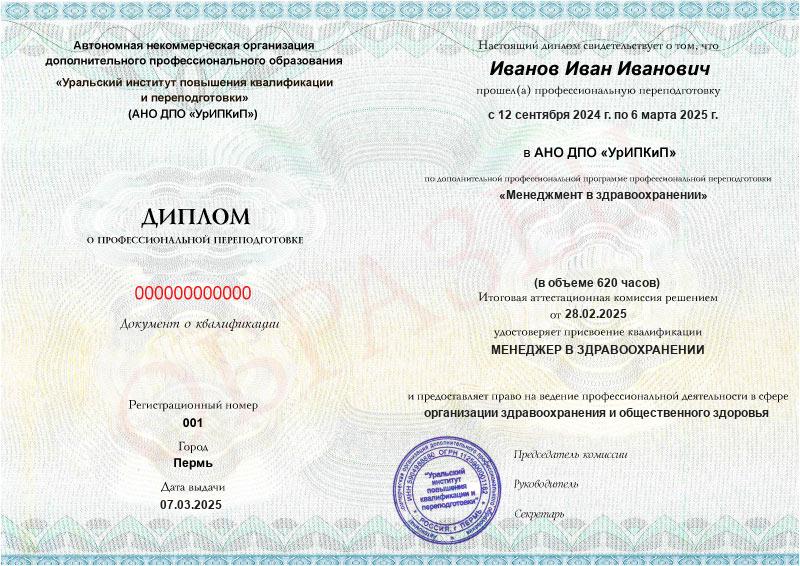 Обучение менеджменту в здравоохранении в АНО ДПО «УрИПКиП».