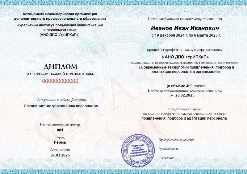 Обзор программы профессиональной переподготовки «Современные технологии привлечения, подбора и адаптации персонала в организации» с присвоением квалификации «Специалист по управлению персоналом»